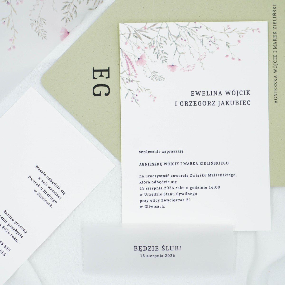 Proponujemy, aby zamówić kilka zaproszeń bez personalizacji – do własnoręcznego wpisania nazwisk gości, na wszelki wypadek 🙂